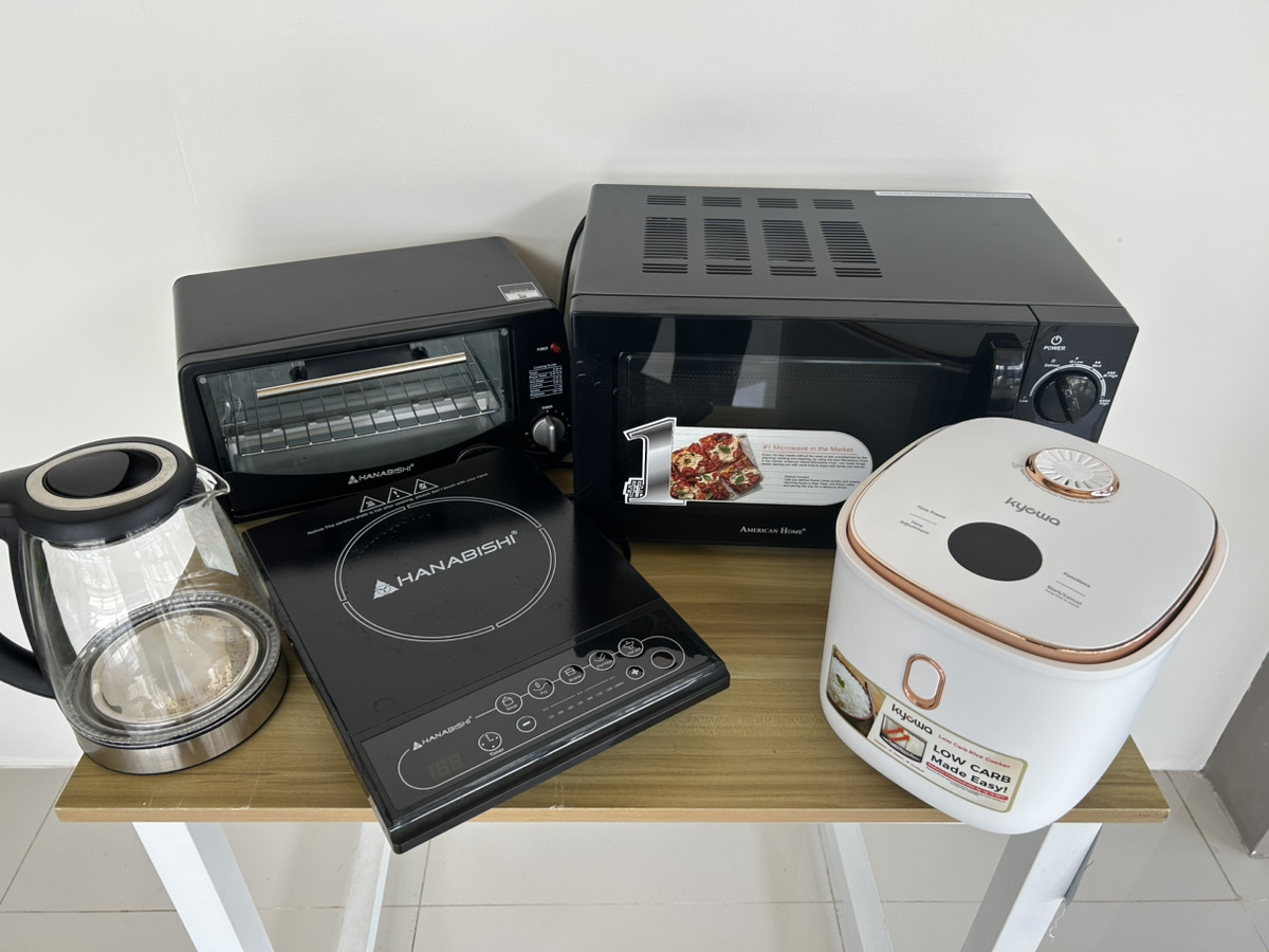 • أدوات المطبخ الأساسية، مثل الأطباق والمقالي وغيرها من أدوات الطهي